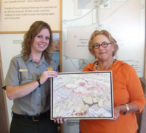 A ranger at Petrified Forest National Park accepts the donation of 'Caprock and Jaspar' on Oct. 9, 2011.
